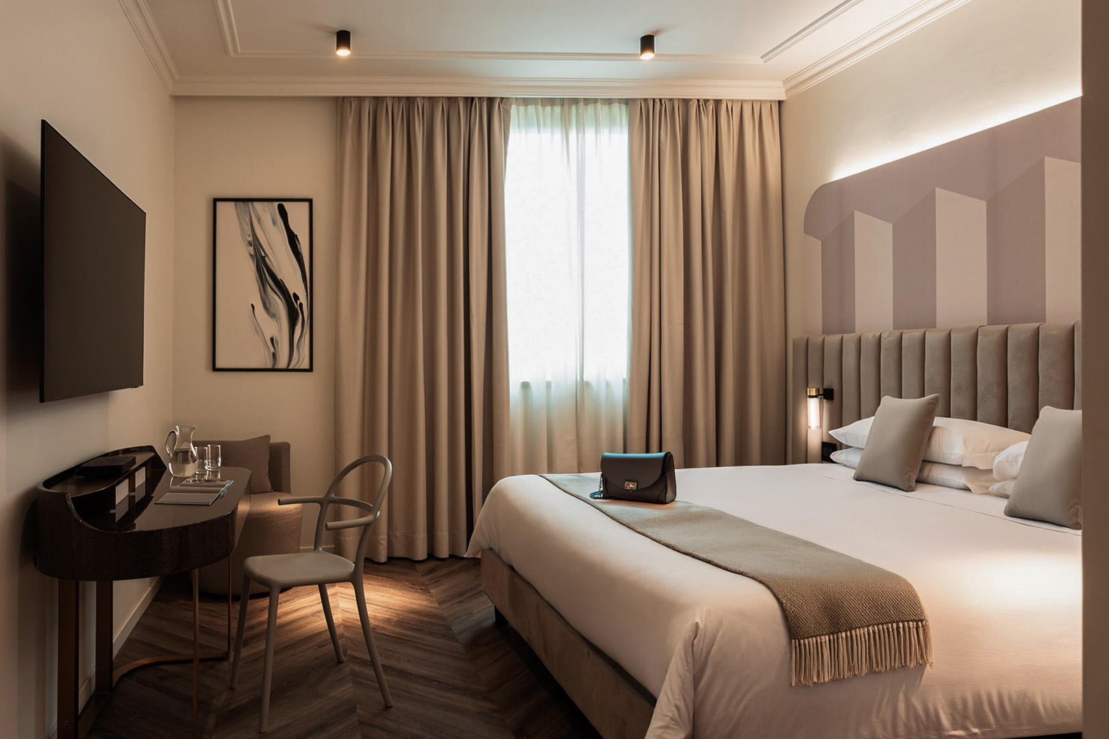 Un accurato restyling a tutto tondo firmato da Nick Maltese e Fede Pagetti di Nick Maltese Studio sta rivitalizzando la maestosa struttura alberghiera situata nel polmone verde di Assago, al portale sud di Milano. Quattro situazioni rubano l’occhio e confermano l’eccellente qualità progettuale, la versatilità e l’eclettismo anche ironico dei due architetti, tra I recenti highlights progettuali di Nick Maltese Studio di Nick Maltese e Fede Pagetti va certamente annoverato l’intervento di interior design nell’imponente TRGH-The Royal Garden Hotel. La grande e lussuosa struttura ricettiva si compone di 150 camere di cui 3 camere suite per affitti long stay, 40 junior suites e 107 standard, di un Centro Congressi con sei sale meeting, del Blue Crab Restaurant, del versatile The Captain’s Bar, di una palestra e di spazi outdoor con urban pool. Vocato a una ricettività soprattutto business, l’albergo, che si trova nel paesaggio campestre di Assago, sorprendente e inaspettato perché proprio alle porte di Milano, necessitava di un profondo ripensamento tecnico e formale per renderlo più rispondente alle crescenti necessità MICE (Meetings, Incentives, Conferences and Exhibitions/riunioni, incentive tour, conferenze ed esposizioni) del viaggiatore d’affari contemporaneo. Spiegano i due progettisti: “Nell’affrontare questo lavoro di restyling a 360 gradi si è, per fortuna, creato fin da subito un bell’affiatamento sinergico tra la proprietà, chi la gestisce e il nostro studio per quanto riguarda l'approccio architettonico e decorativo degli esterni e degli interni. I cardini dell’intervento, sui quali c’è stata totale intesa, consistono nel conservare, ove possibile l’esistente, nell’impiegare materiali tecnici, resistenti, pitture ecologiche, e nel mettere attenzione sul tema dell’ecosostenibilità tant’è che si è destinata un’ampia area dell’outdoor alla installazione di un piccolo parco fotovoltaico che contribuisce in misura significativa al bilancio energetica dell’albergo. L’obiettivo che abbiamo perseguito è stato quello di rompere la monotonia, la standardizzazione anonima dei grandi business hotel affidandoci a un approccio più romantico e personale, a suo modo delicato e contemporaneo, che comunque nulla toglie alle dotazioni oggi indispensabili per l’uomo d’affari. Abbiamo tentato di dare un’identità marcata sia agli spazi comuni che alle camere, di modo che nell’ospite il ricordo di The Garden Royal Hotel resti unico e non svanisca nel banale calderone dei tanti alberghi frequentati per ragioni di lavoro. Considerate le grandi vetrate che caratterizzano la spigolosa struttura architettonica originaria, abbiamo anche puntato a stabilire una connessione molto fisica ed emozionale tra l’interno e gli spazi verdi esterni dove si possono organizzare eventi speciali”.