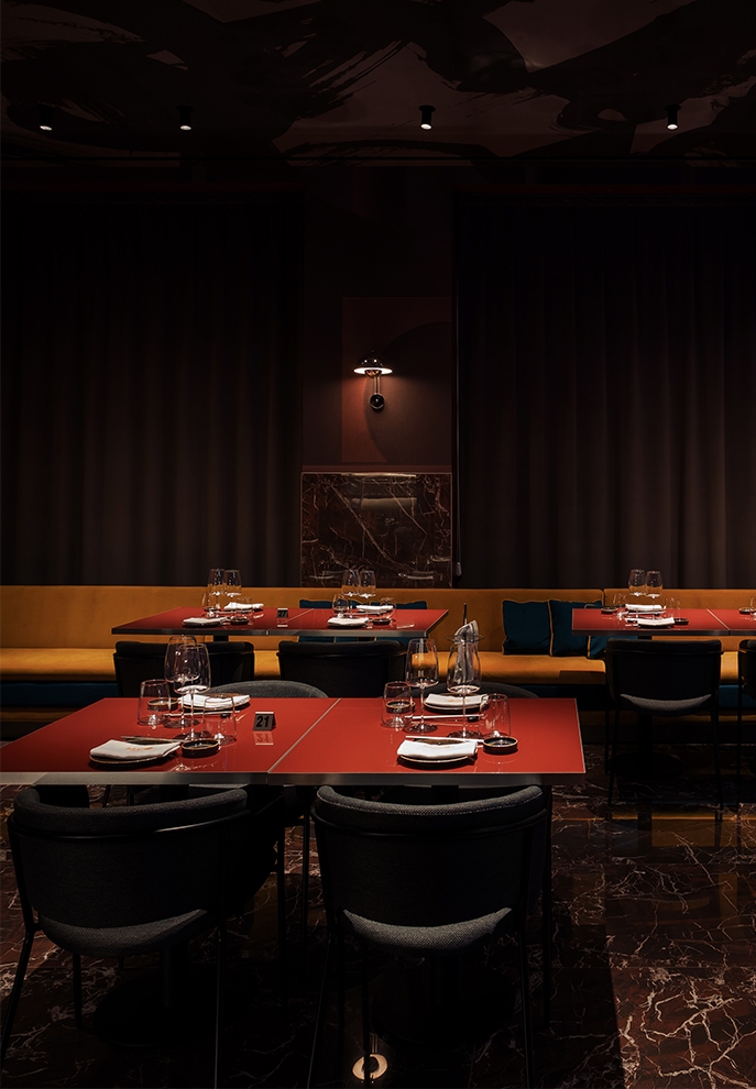 MERGE DIVERSE CULTURAL INFLUENCES INTO A COHERENT AND VISUALLY STUNNING RESTAURANT DESIGN IN MILAN.