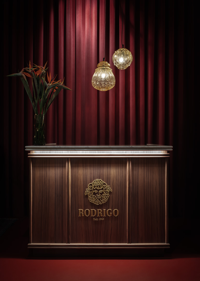 Via Savona si impone come il nuovo epicentro del fermento creativo e culturale milanese, un quartiere che negli ultimi anni ha conquistato il titolo di zona “in” della città. Qui, modernità e tradizione si incontrano in un dialogo continuo, tra i boutique hotel di tendenza che ospitano viaggiatori da ogni parte del mondo e le numerose proposte gastronomiche che spuntano lungo i suoi marciapiedi, animando le serate con sapori e atmosfere uniche. Bar di lusso, caffè dall’eleganza senza tempo e ristoranti che spaziano dalla cucina tradizionale a quella più sperimentale contribuiscono a creare una scena vivace e cosmopolita, culminando in una vita notturna che vibra di energia e creatività. Culla del Fuorisalone e cuore pulsante della Milano Design Week, Via Savona non è solo una strada, ma un simbolo della capacità di Milano di reinventarsi continuamente, mantenendo un forte legame con la sua anima creativa. Una passeggiata qui rivela una Milano che pulsa di vitalità, proiettata verso il futuro ma profondamente radicata nella sua tradizione di eccellenza. In questo contesto dinamico e ricercato, Rodrigo si distingue come un luogo che cattura l’essenza del quartiere ma la trasforma in qualcosa di unico e irripetibile. È più di un ristorante: è un viaggio nel tempo, un rifugio che racchiude in sé la magia del passato, prendendo come esempio il ristorante “madre” di Rodrigo Bologna e la freschezza del presente con le eclettiche influenze stilistiche di Nick Maltese Studio . Entrando, sembra di essere trasportati in una scena di un film neorealista italiano, dove ogni dettaglio parla di storia e di arte. Un luogo in cui l’arte della convivialità trova una cornice di rara eleganza attraverso un’atmosfera, intima e ricca di suggestioni, che avvolge il locale in una calda aurea cinematografica.